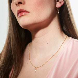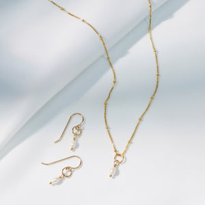Give something a little extra special to that mama figure in your life this year. Simple, classic, and easy to wear, our single drop rice pearl necklace and earring combination is the perfect addition to any jewellery collection. Our dainty natural pearl on 16" or 18" gold fill chain, with small accent pearl earrings. Gold Fill is a manufactured metal using gold and other alloy, and is not suitable for everyday use for anyone with high acid in their skin. Please allow two weeks for manufacturing. Christmas orders need to be placed by Dec 12, and will be ready on Dec 17th for pickup.